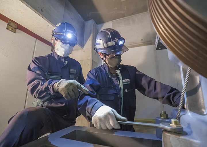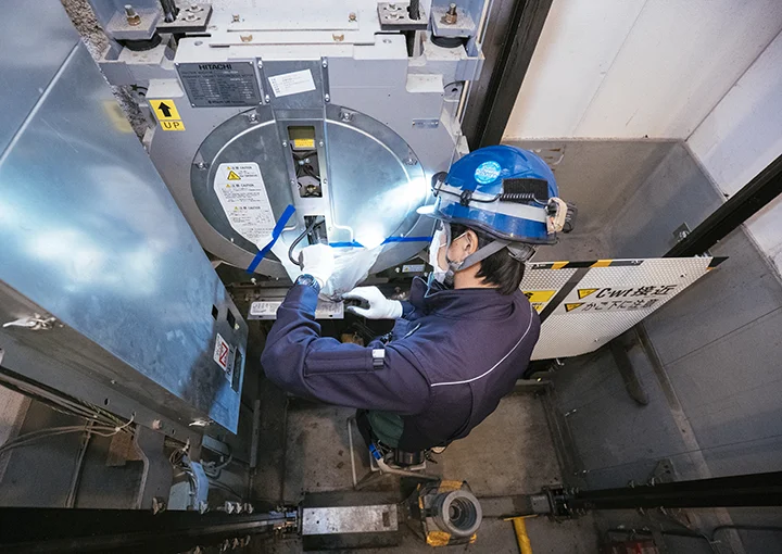 乗っているエレベーターが急降下したとしたら…そんな不安を抱えて利用している人はまずいないでしょう。それはエレベーターの事故やニュースを目にしたことがないから。私たちが手がけている仕事は、エレベーターやエスカレーターといった昇降機の安全を創ること。安心して利用していただき、その便利さを当たり前に感じてもらう。それが私たちがこの仕事を続けている一番の理由です。
